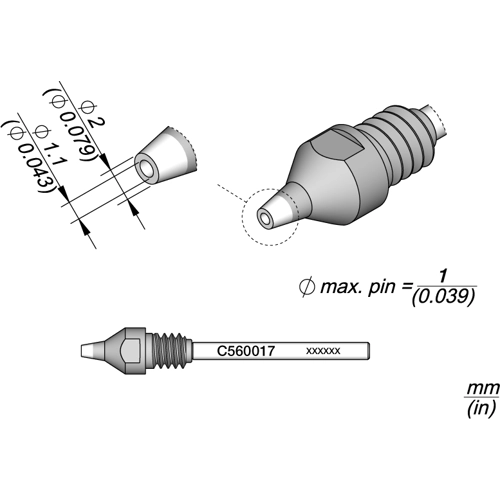 Through-hole desoldering tip Ø 1.1. This product offers instant heat up, excellent heat transfer and great durability.