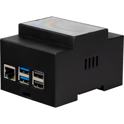 This DIN rail enclosure for the Raspberry Pi 5, specially designed to mount your Raspberry Pi securely and accessibly. With precise cut-outs for all ports and additional space for expansion, this enclosure fits your project requirements perfectly. The highlight: A transparent, removable panel allows quick access to your device, while an additional panel with integrated fan ensures effective cooling. The package is completed by passive heat sinks that ensure optimum heat dissipation. With our housing, your Raspberry Pi 5 is ideally equipped for any challenge.