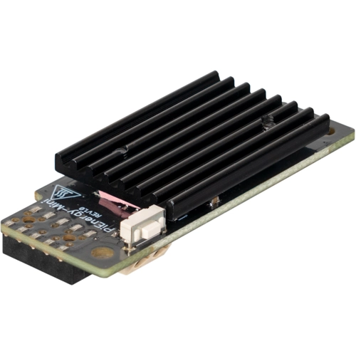 With the PiEnergy-Mini, you can operate your Raspberry Pi with a voltage of 6 to 36 VDC (5.1 V output voltage). You can use the button integrated on the board to both start up and shut down your Raspberry Pi. Communication with the Raspberry Pi runs via GPIO4, but this connection can also be disconnected by removing a resistor in order to use the pin freely. The ultra-flat design allows it to be used in conjunction with many enclosures. The pin header is included and not soldered to keep the design even flatter. This version features specially adapted autostart firmware that starts the Raspberry Pi immediately when voltage is applied. Additional connections - 5V fan connection (2-pin / 2.54mm), solder pads for external on/off switch, weight 15 g, dimensions 23 x 56 x 11 mm, scope of delivery: board with mounted heat sink, pin header (2x5), spacer, screw, nut.