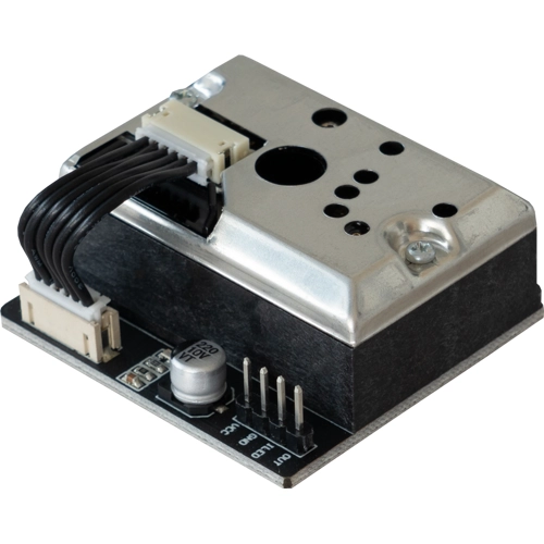 The GP2Y1014AU is an optical sensor for the detection of dust particles. The light reflected by the dust is detected by an integrated infrared diode and a phototransistor and can thus be determined in an analog value.