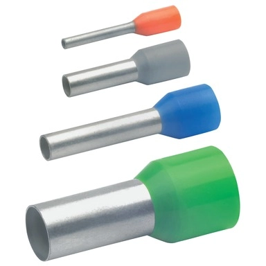 Insulated wire-end ferrule to DIN with Easy-Entry insulation for splice-free cable entry, colour code 1, for fine and superfine stranded conductors, according to DIN EN 60228 Cl. 5 and 6.