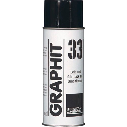 GRAPHIT 33 forms a black, conductive graphite coating. The conductive coating permanently reduces surface resistances to values below 2000 ohms and has good adhesion even to plastics and rubber. GRAPHIT 33 is used for antistatic coating of plastic pipes, as a conductive release coating for high-voltage contacts and for repairing graphitized conductive layers.