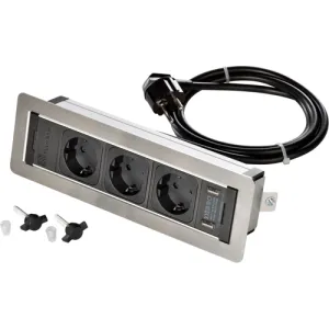 VersaFRAME, built-in socket outlet, with 3 earthedsocket outlet, 2x USB port, incl. 2 m connection cable, colour: brushed stainless steel