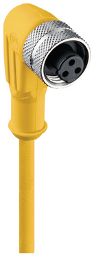 1/2"-20UNF-2B Actuator/sensor single-ended cordset: Female, angled, 3-pin, U-coded, yellow body, 230 V AC/DC, 4 A; PVC yellow cable, 3-wires, 0.38 mm².