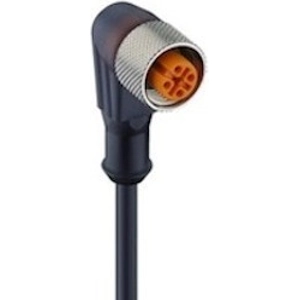 M12 F&B (PVC) Actuator/sensor single-ended cordset: Female, angled, 4-pin, A-coded, orange body, 230 V AC/DC, 4 A; PVC orange cable, 4-wires, 0.25 mm².