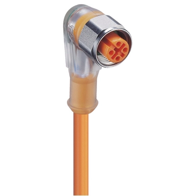 M12 F&B (PVC) Actuator/sensor single-ended cordset: Female, angled, 4-pin, A-coded, transparent body, 10-30 V DC, 4 A, with 3xLEDs (PNP); PVC orange cable, 4-wires, 0.25 mm².