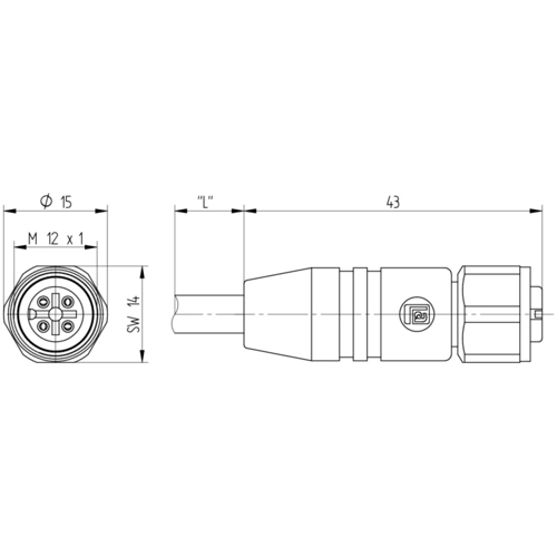 M12 Standard Actuator/sensor single-ended cordset: Female, straight, 4-pin, A-coded, shielded, orange body, 50 V AC / 60 V DC, 4 A; PVC orange cable, 4-wires, 0.34 mm².