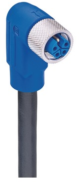M12 Power single-ended cordset: Female, angled, 5-pin(4+PE), K-coded, blue body, 600 V AC/DC, 16 A; PUR black cable, 1.50 mm².