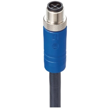 M12 Power single-ended cordset: Male, straight, 4-pin(3+PE), S-coded, shielded, blue body, 600 V AC/DC, 16 A; PVC black cable, 1.50 mm².