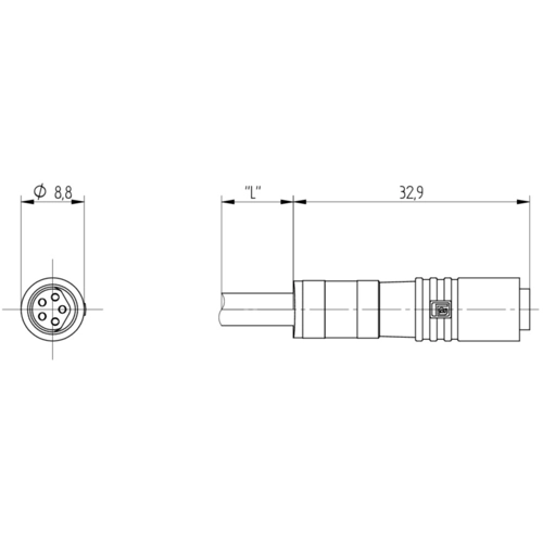 M8 Snap-In Actuator/sensor single-ended cordset: Female, straight, 5-pin, B-coded, translucent body, 50 V AC / 60 V DC, 4 A; PVC black cable, 5-wires, 0.34 mm².