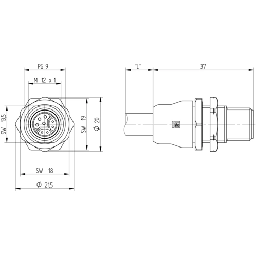 | Connection (2) | M12-cable socket, straight | |