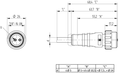 | Connection (1) | 7/8"-cable plug, straight | |