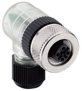 Field attachable connector, M12 female connector, 4-pole with threaded joint and LED operation and function indicator, assembling with screw terminals.