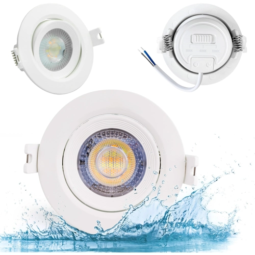 LED CCT downlight with adjustable colour temperature via switch on the back, with a narrow beam angle of 38°, an output of 7W and a luminous flux of 718lm, flexible swivelling up to 45°.