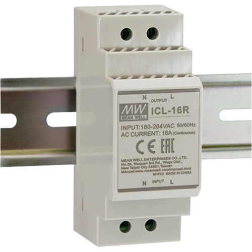The ICL-16R is a 16A inrush current limiter that can be used to reduce the high starting current due to capacitive load causing the circuit breaker to be false triggered. Several power supplies can be installed on the same AC line after the implementation of an ICL-16.