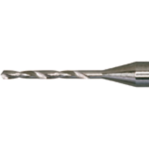 For drilling in GRP circuit boards, non-hardened steels and precious metals; Design: High-performance high-speed steel hardened to approx. 65 to 67 Rc, Heat resistance up to 600 °C, can be used wet and dry, speeds of approx. 3000 to 5000 rpm are recommended. Shaft diameter: 2,35 mm, Overall length: 43 mm, Head length: 9,0 mm up to head diameter 0.7 mm, 11 mm up to head diameter 1.4 mm, 12 mm from head diameter 1.5 mm.