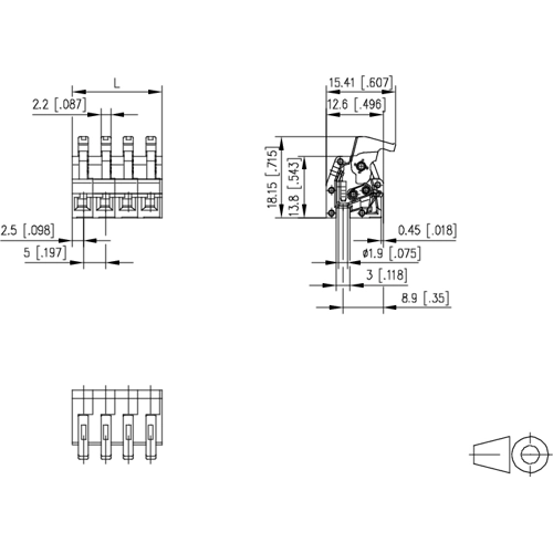 It is suitable for solid wires and multi-stranded wires with a nominal cross section of 0.08 - 2.5 mm² and permits direct clamping without preconditioning of the conductor, direct clamping with splice protection and indirect clamping via an end sleeve or pin cable lug.