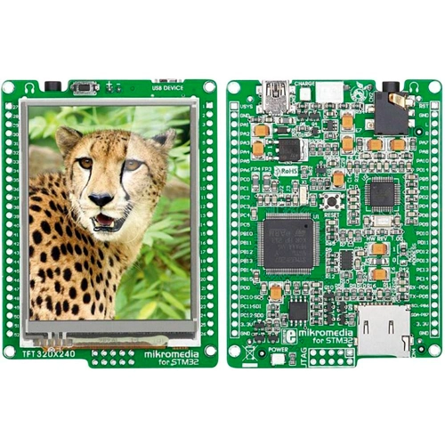 Mikromedia for STM32® is a compact development system with lots of on-board peripherals which allow development of devices with multimedia contents. The central part of the system is a 32-bit STM32F207VGT6 or STM32F407VGT6 microcontroller.