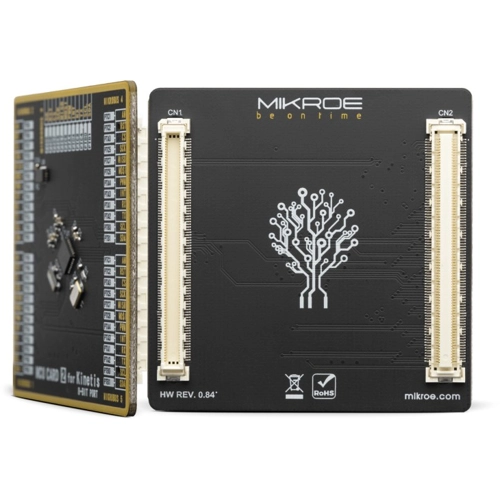 MCU Card is a standardized add-on board, which allows very simple installation and replacement of the microcontroller unit (MCU) on a development board equipped with the MCU Card socket. It ensures the absolute compatibility between the development board and any of the supported MCUs, regardless of their pin number and compatibility. It is quipped with two 168-pin mezzanine connectors, allowing it to support even MCUs with extremely high pin count. It's clever design allows very simple usage, following the well-established plug and play concept of the Click board line of product.