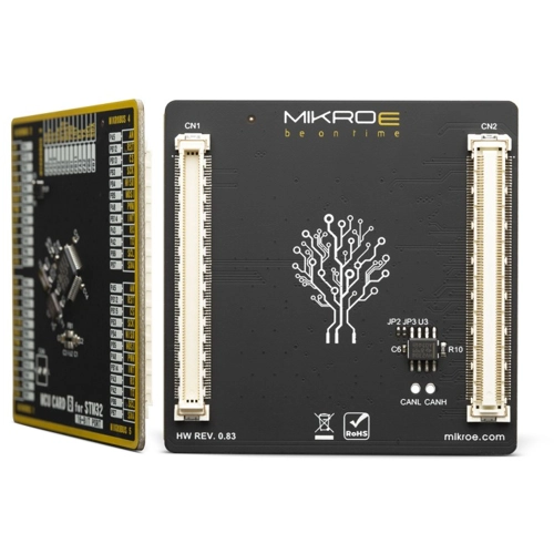 MCU Card is a standardized add-on board, which allows very simple installation and replacement of the microcontroller unit (MCU) on a development board equipped with the MCU Card socket. It ensures the absolute compatibility between the development board and any of the supported MCUs, regardless of their pin number and compatibility. It is quipped with two 168-pin mezzanine connectors, allowing it to support even MCUs with extremely high pin count. It's clever design allows very simple usage, following the well-established plug and play concept of the Click board line of product.