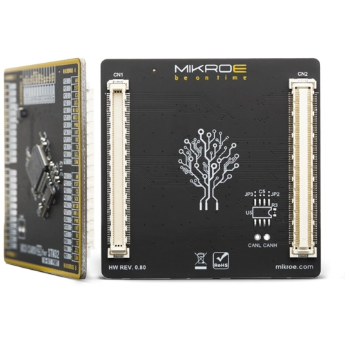 MCU Card is a standardized add-on board, which allows very simple installation and replacement of the microcontroller unit (MCU) on a development board equipped with the MCU Card socket. It ensures the absolute compatibility between the development board and any of the supported MCUs, regardless of their pin number and compatibility. It is quipped with two 168-pin mezzanine connectors, allowing it to support even MCUs with extremely high pin count. It's clever design allows very simple usage, following the well-established plug and play concept of the Click board line of product.