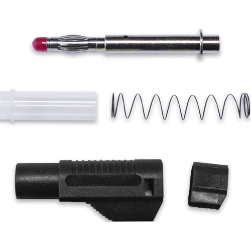 The BU-32614 is a retractable 4mm banana plug that fits into standard 4mm banana jacks.