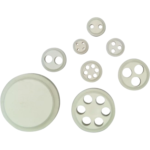The KV-ME multi-insert can be used to route several cables through one fitting. The fitted seal insert in the cable fitting is simply swapped for the KV-ME multi-insert during assembly. Please note that the cable diameter may be up to 20% less than the diameter of the hole, but must not undershoot the hole diameter by less than 1 mm.