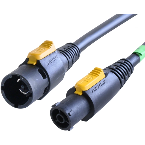 Cables are equipped with Neutrik powerCON TRUE1 NAC3FX-W and NAC3MX-W for extention cables, with an open end for termination of local connectors for "power in" supply cables or a right-angled Schuko plug.