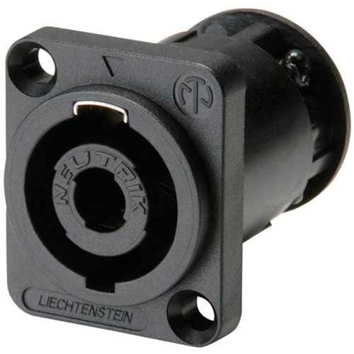 The speakON panel mount connectors are the standard chassis connectors for loudspeaker / amplifier interconnections. They feature a unique metal locking system, making contact only once fully locked