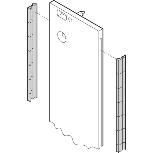 The stainless steel EMC gaskets are inserted into the lateral slots of the shieldable front panels (2 pieces per front panel).