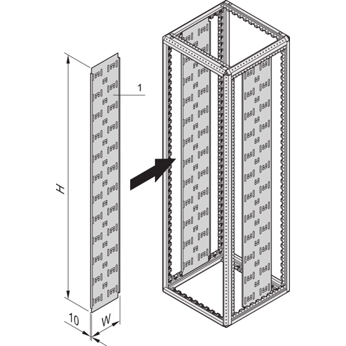 Vertical cable panel for Varistar free standing cabinets, powder-coated in cabinet color in different widths.