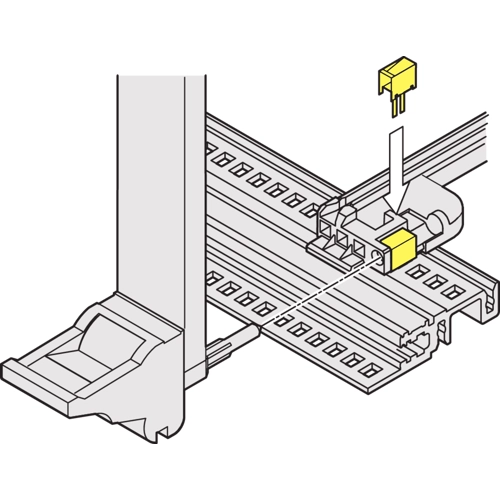 The ESD clip can be plugged into the keying/coding block of the guide rail with coding. It provides an conductive contact between the alignment pin of the inserter/extractor handle (IEL or IET) and the horizontal rail.