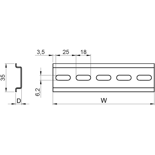 DIN rail, perforated, 35 x 7.5 mm, W 575 mm, steel, electrogalvanized, 20118-895, package with 10 pieces