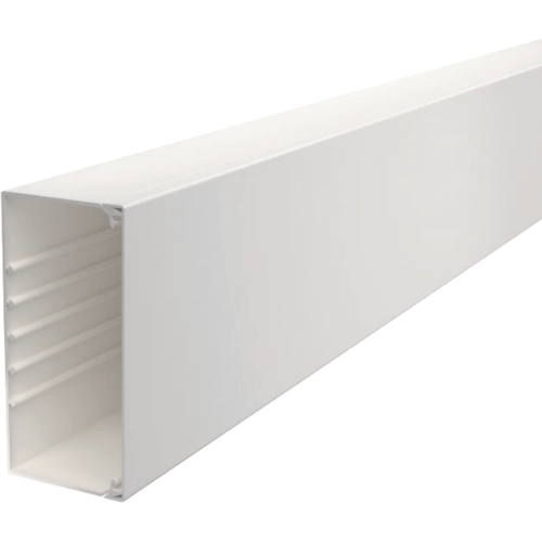 The 6191304 is a wall installation trunking as trunking base with base perforation and matching trunking cover. This product has four cover fixing devices included. The lid clamp can be moved along the entire length of the trunking.