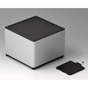 4-part enclosure for many different applications. Sturdy frame made of aluminium, glass bead-blasted and anodised. Plastic parts made of ASA+PC-FR with good UV resistance and high flame resistance. Attachment domes for PCBs and components in the top and bottom parts. Top part with recessed surface to protect the membrane keyboard. Bottom part with opening and screw-down cover: practical for the use of a battery compartment or for access to the interior, e.g. for a memory card or batteries that are mounted directly on the PCB. Battery compartment kit 4 x AA with contact springs, battery clips, button cell holder and wall mounting option as accessories.