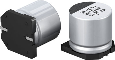 Surface mount aluminum electrolytic capacitor is used in electronic applications for it's compact size and high capacitance value.