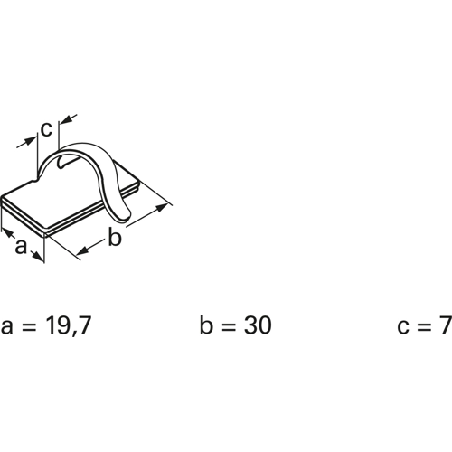 Self-adhesive soft metal clip. Relatively easy deforming clip material for quick lock and release and force-free adaptation to the cable probe design.