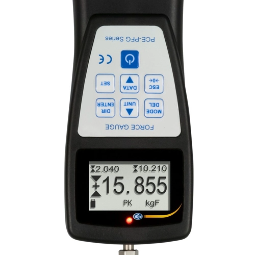 The force measuring device is a handy, digital measuring device for measuring tensile and compressive forces. The force measuring device offers a sampling rate of 500 Hz and various measurement options such as real-time measurement (RT), maximum value measurement (PEAK), configurable average value acquisition (Average) and automatic measurement storage of up to 100 measurements.
