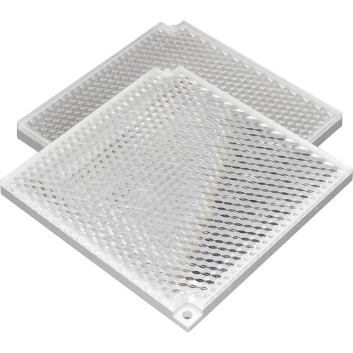 Reflector, rectangular 100 mm x 100 mm, mounting holes.