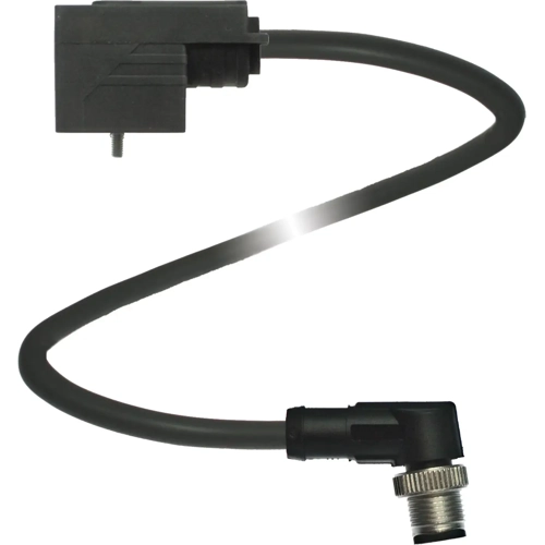 Valve connector Form B (Ind), Z-diode LED 2-pin+PE to M12 plug angled A-coded 3-pin, PVC cable black.