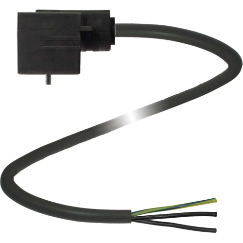 Sensor actuator cable, valve connector DIN form A, angled to open end, 2 pole + PE, 10 m, PUR, black, 4 A, 456830