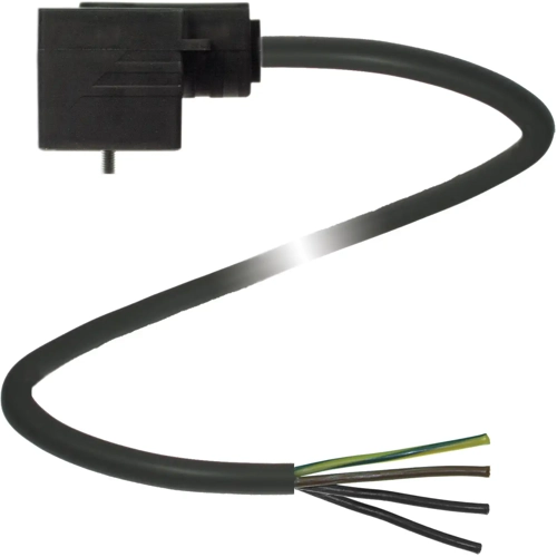 Valve connector Form A, 3-pin+PE, PUR cable black, drag chain suitable.