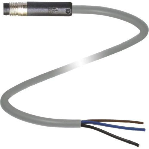 Male cordset single-ended M8 snap-lock straight A-coded, 3-pin, PVC cable grey.