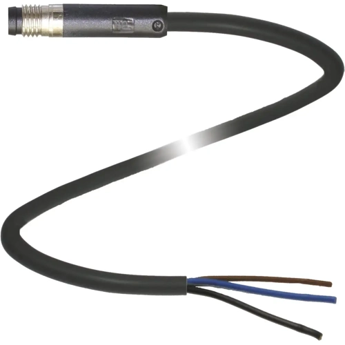 Male cordset single-ended M8 snap-lock straight A-coded, 3-pin, PUR cable black, UL-approved, drag chain suitable, torsion resistant.