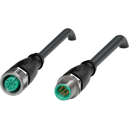 Sensor actuator cable, M12-cable socket, straight to M12-cable plug, straight, 4 pole/8 pole, 5 m, PUR, black, 4 A, 70153008