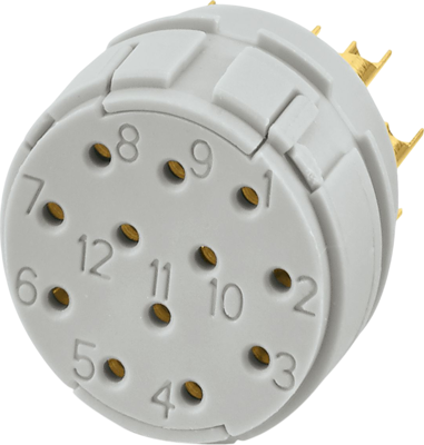 Contact insert, M23, number of positions: 12, contact connection type: Socket, Solder cup, series: NC, RC, RM, TU, UC, Item is lead-free in accordance with RoHS II without Exemption 6c (Pb < 0.1 %).