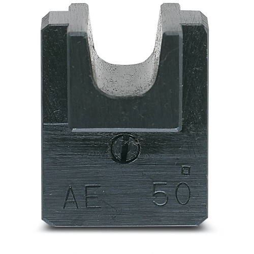 Crimp insert die (lower part), for CRIMPFOX-C120, for ferrules (DIN 46228) 50 mm², Trapeze crimp, Universal, Black.