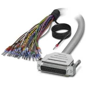 Assembled shielded round cable, Connection 1: Single wires (25-positions). The wires are marked and fitted with ferrules. The braided shield is routed to a separate cable end. Connection 2: D-SUB socket strip (1x25-positions), Cable length: 4 m.