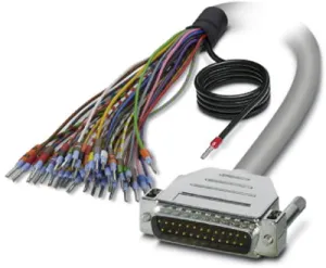 Assembled shielded round cable, Connection 1: Single wires (25-positions). The wires are marked and fitted with ferrules. The braided shield is routed to a separate cable end. Connection 2: D-SUB pin strip (1x25-positions), Cable length: 6 m.