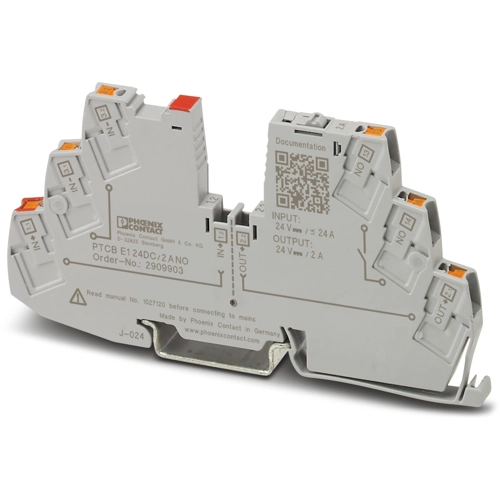 1-channel, electronic circuit breaker for protecting loads at 24 V DC against overload and short circuit. Easy potential distribution with components from the CLIPLINE complete terminal block system. With fixed nominal current. For installation on DIN rails.